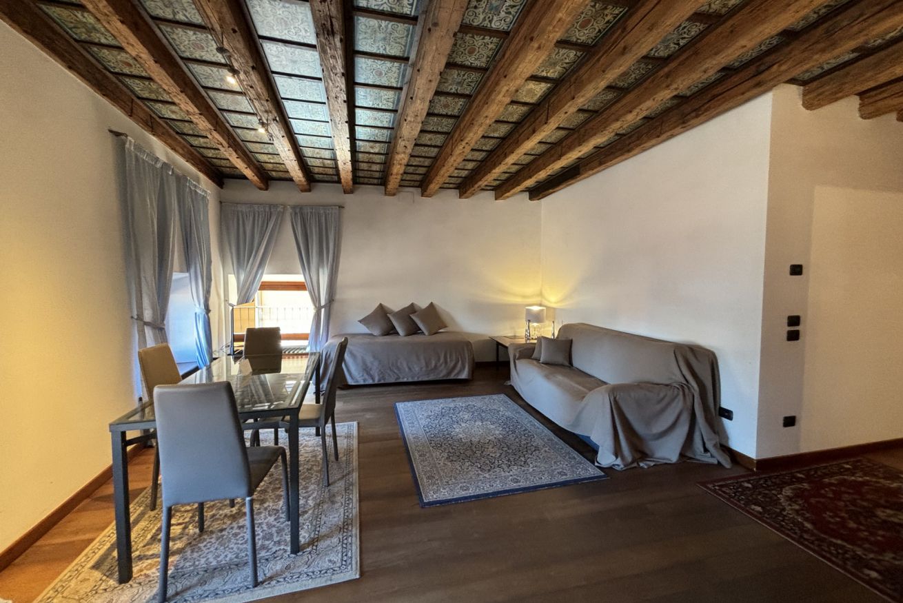 Situato a due passi dalla bellissima Piazza Erbe e dalla Torre dei Lamberti, questo suggestivo appartamento si trova al quinto piano di uno storico edificio, raggiungibile tramite ascensore dal primo piano.
